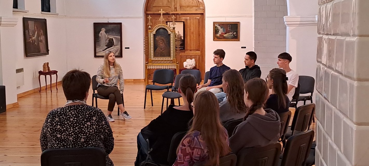Lydimi istorijos ir tikybos mokytojų, moksleiviai apžiūrėjo kūrėjo darbus, išgirdo apie jo gyvenimą ir kūrybos kelią.