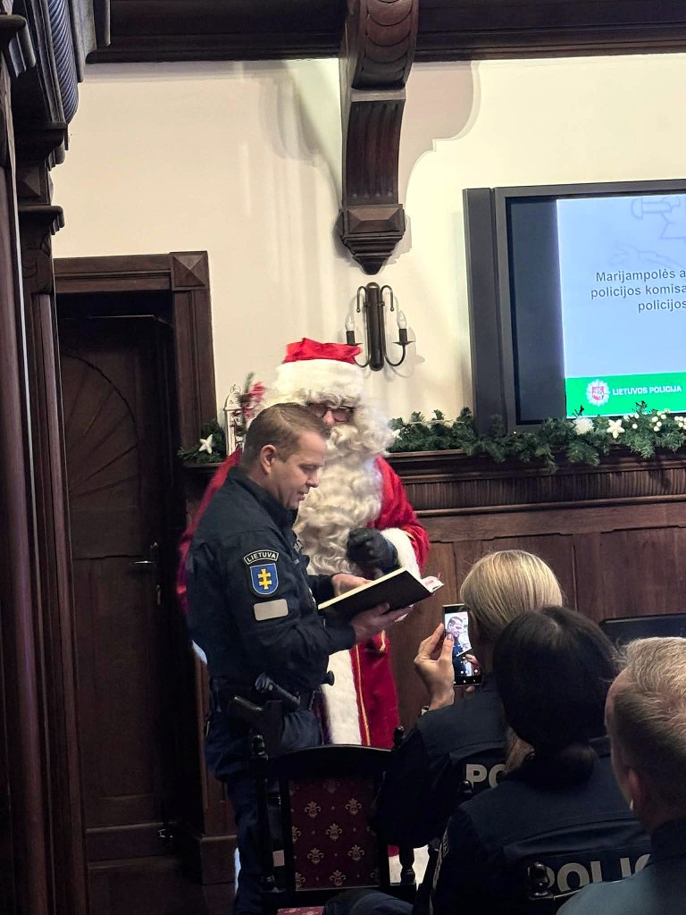 Kalėdų senelis pareigūnams priminė Jurbarko krašto ir miesto kūrimo istoriją bei supažindino su per daugelį metų Jurbarko krašte užfiksuotais pažeidimais! ![]()